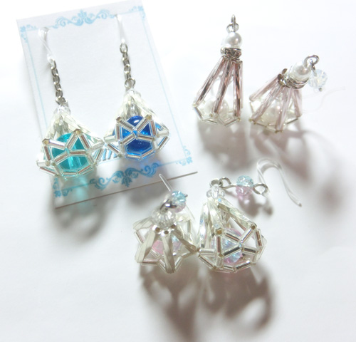 立方体とか、正八角形とか、ピアスにできそうなものを作ってきたんですが、こんなの作りました。