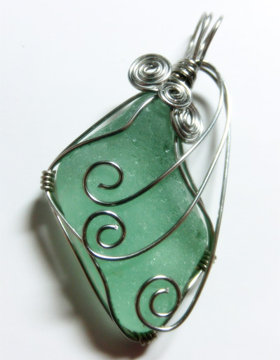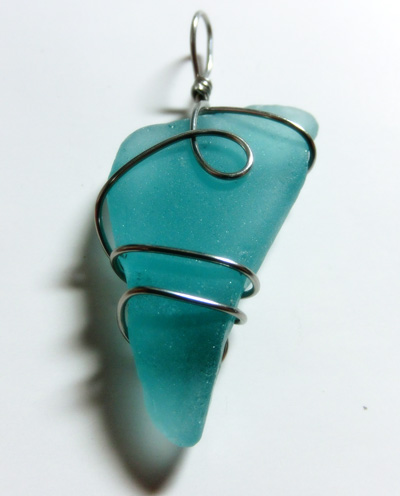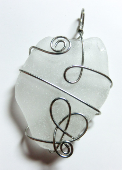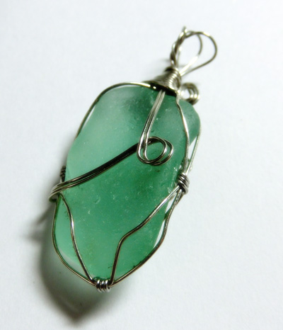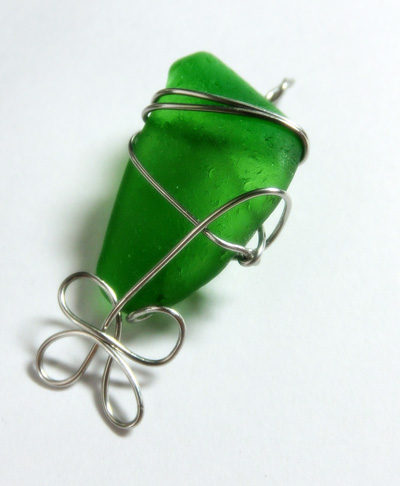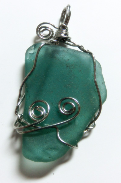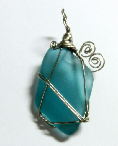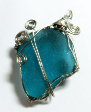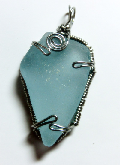 ワイヤーグルグル巻きではなく、かぎ爪っぽく仕立てたシーグラス。
