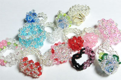 100円グループの指輪たちは、アクリルビーズを使用しているので、気軽に使うことができるのもいいみたいです。