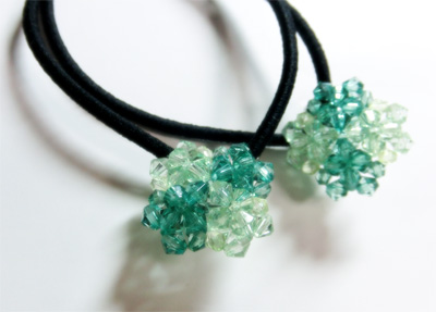 ヘアゴムは、何かモチーフを作っては、無理やりヘアゴムにくっつけるという作り方です。