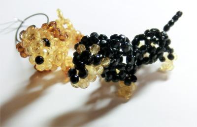 黒の子は、レシピでは茶色の部分がもっと濃い茶色なんですが、一度作った時に、何か違和感を感じたので、うすい色のビーズを採用。