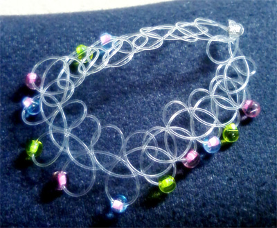 たまたま、余ったテグスとかしめ玉があったので、編んでみました。