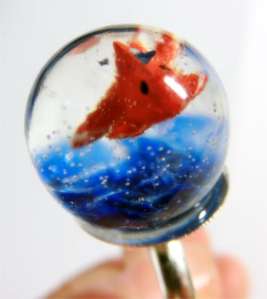 ビー玉シリコンの中にレジンを何回にもわけていれるので、作るのに時間がかかりますが、やっぱ金魚はかわいいです。