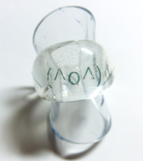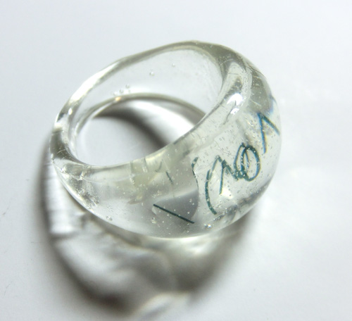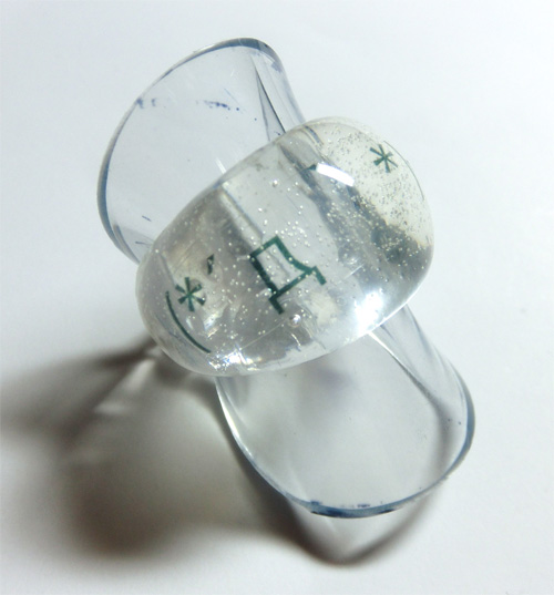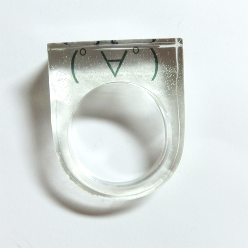 13号の指輪の型に、印刷した顔文字を封入しました。