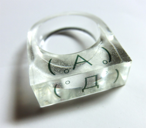 上の指輪、横から見ると( ゚∀ ゚)キターの顔文字なんですが、上から見ると・・・