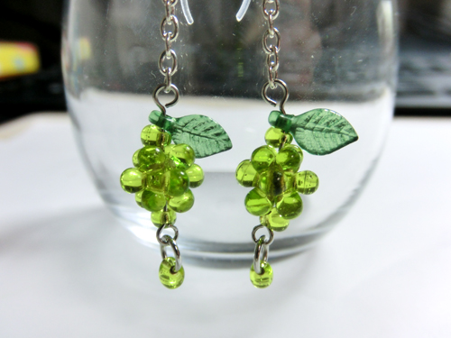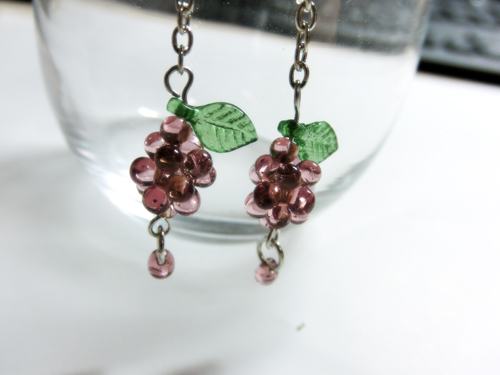 耳元で揺れるぶどうが、キラキラしておいしそうです。